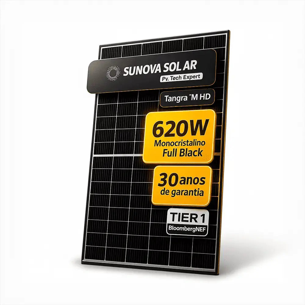 Painel Solar 620w Preto Sunova Monocristalino Halfcell Ntype 132 Células