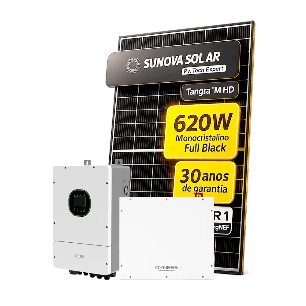 Kit Energia Solar Híbrido 500kWh Mês 3,72kWp 6 Painel Sunova 620W Inversor Saj 5kW 220V Bateria Dyness 5,12kWh