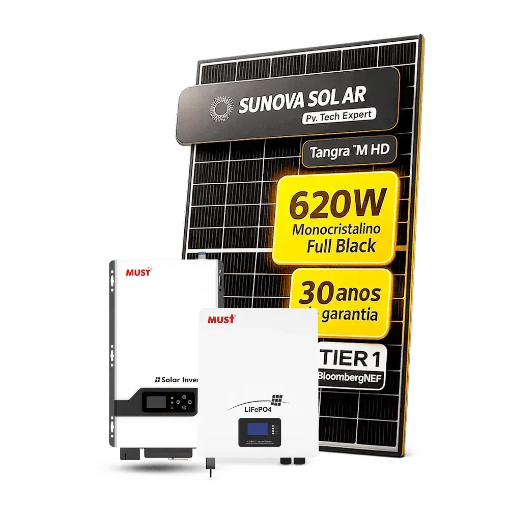 Kit Energia Solar Offgrid 3,72kWp 6 Painel Sunova 620W Inversor Must 5kW 220V Bateria Lítio 5,12kWh