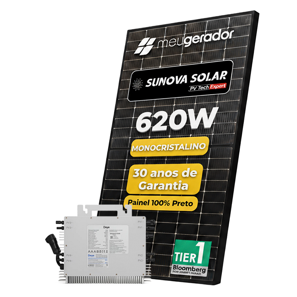 Kit Energia Solar Ongrid 1050kWh Mês 8,06kWp 13 Painel Sunova 620W MicroInversor Deye 9kW 220V 16MPPT