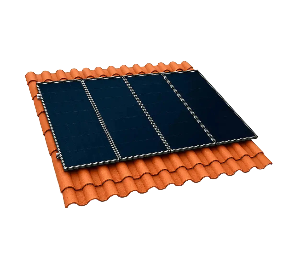 Sistema profissional de fixação para 4 painéis solares em telhados com telhas coloniais/cerâmicas de 40cm. Desenvolvido com alumínio premium, ganchos coloniais ultra-resistentes e tecnologia anti-corrosiva avançada. A única estrutura do mercado com 25 anos de garantia contra corrosão.